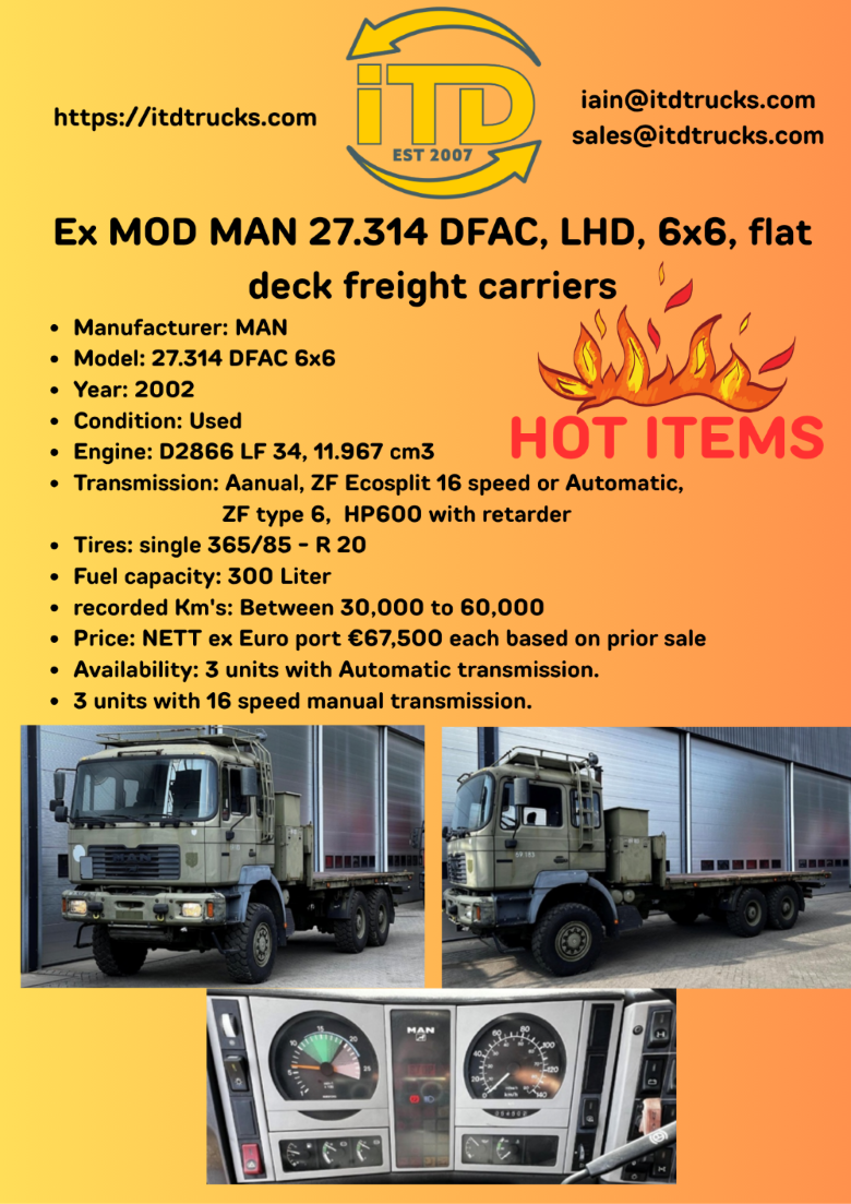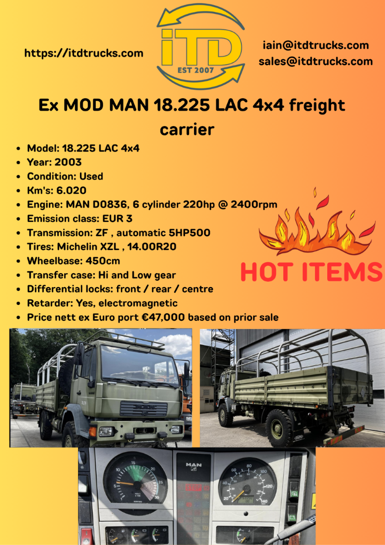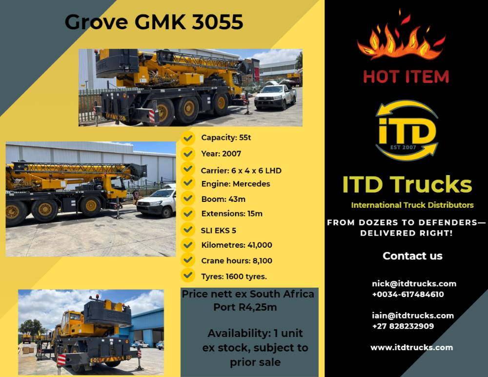HOT DEALS Contact us Name Email Address Message Submit Follow Follow Links HOME ABOUT CONTACT FAQ Equipment ARMORED VEHICLES CONSTRUCTION ROLLERS GOLD MINING EQUIPMENT HEAVY DUTY TRUCKS HEAVY VEHICLE TYRES SPECIALIZED VEHICLES HEAVY VEHICLE TYRES VEHICLES YELLOW METAL Contact Iain Johnstone Tel: +27 82 823 2909 Email: iain@itdtrucks.com Sales Email: sales@itdtrucks.com © 2025 International Truck Distributors | Website Designed and Maintained by KyleDesigns